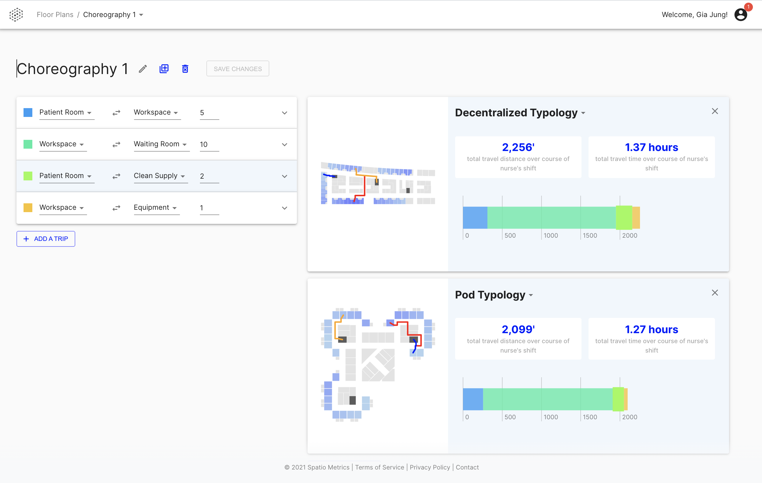 Hospital floor plans are static drawings that are difficult to evaluate. Planners need to measure how a layout affects staff efficiency and patient care — like nurse travel distances and visual connectivity — before a building is constructed.